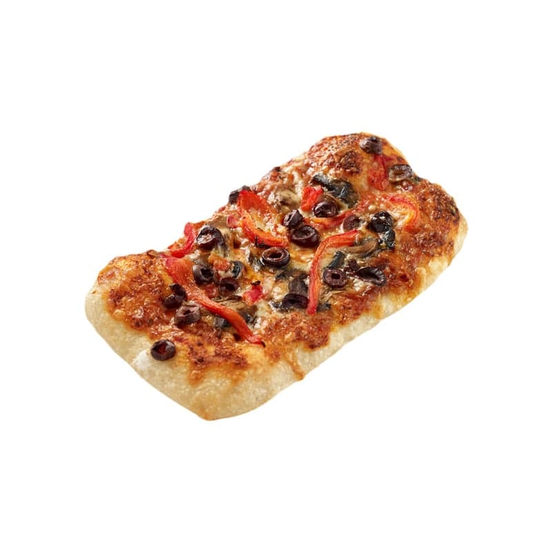 Our Cheese & Veggie Mini Pizza is made using our fermented Turkish dough which gives it a crispy crust and delicious flavour. We add tomato sauce, aged white cheddar, red peppers, mushrooms and olives for the classic vegetarian pizza.